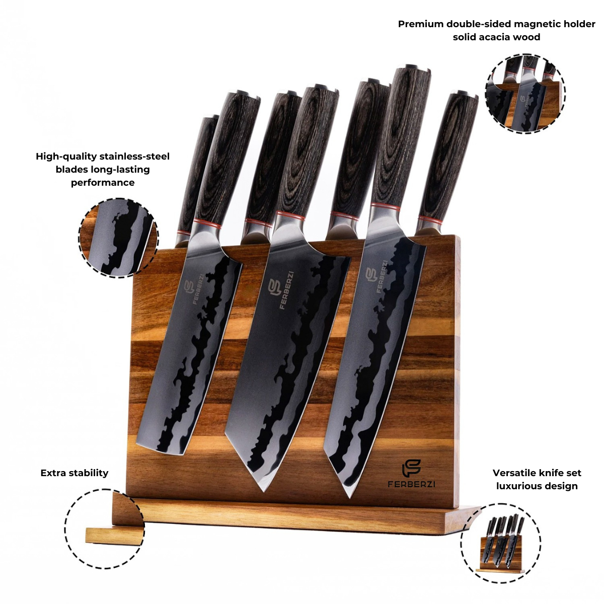 Ferberzi 7-Piece Knife Set – Shadow Wood Premium