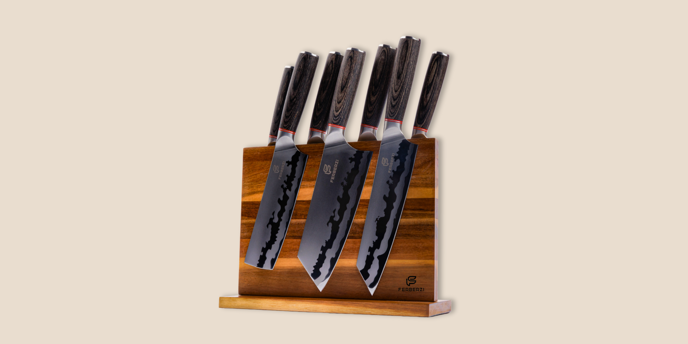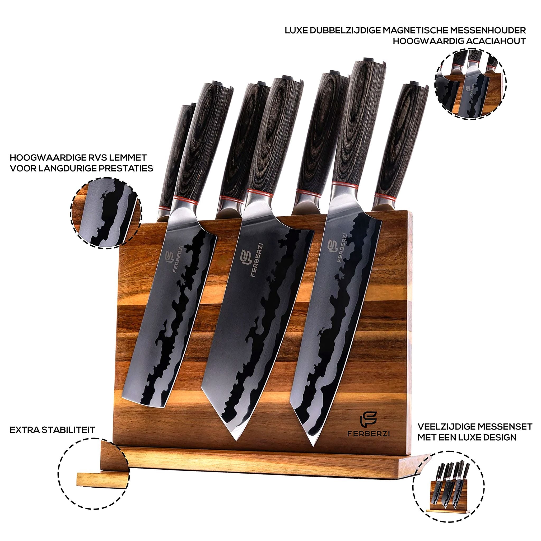 - Dubbelzijdig acaciahout messenhouder – luxe & stevig